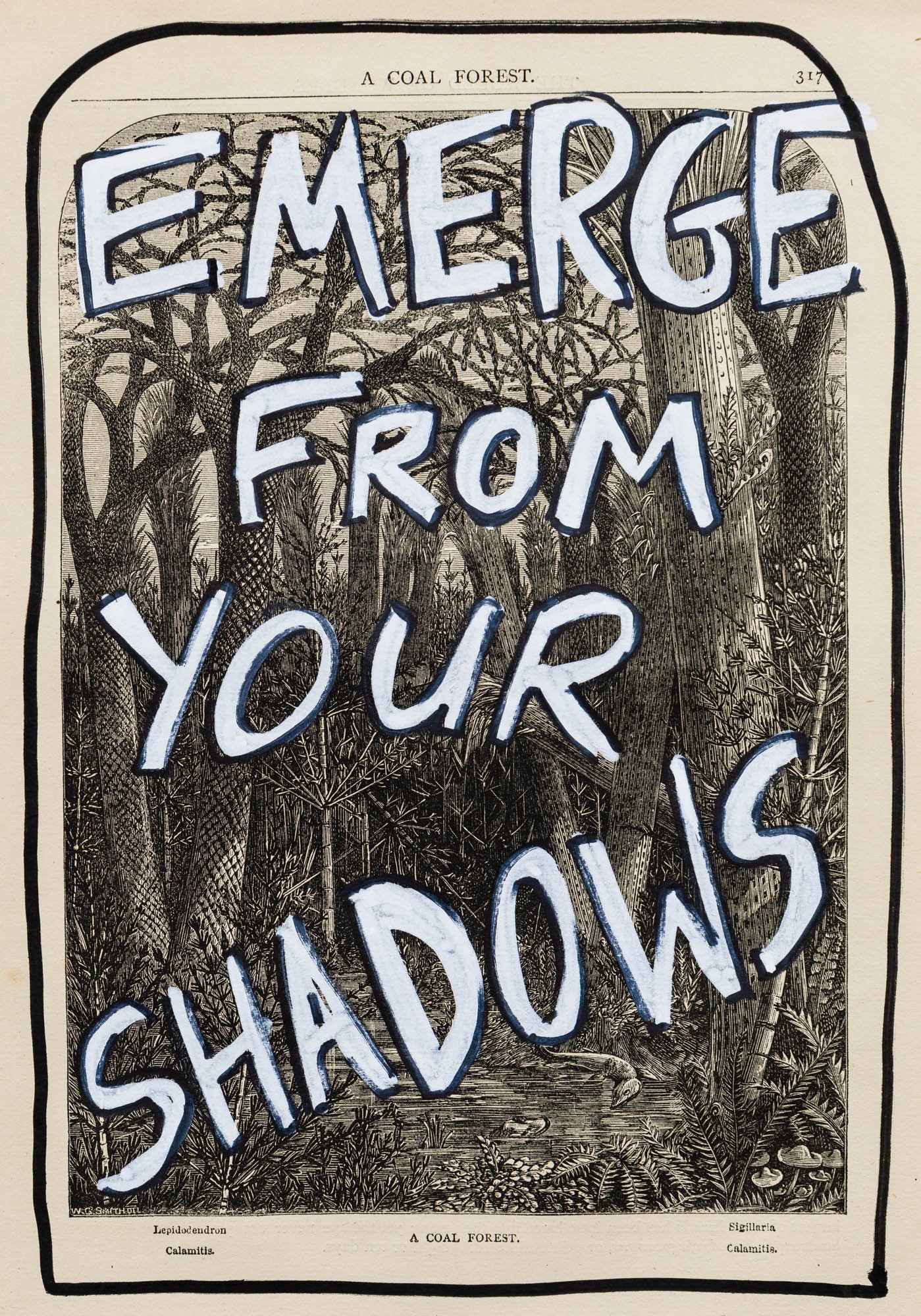 A series of reflections and poetic musings, painted onto vintage book pages.