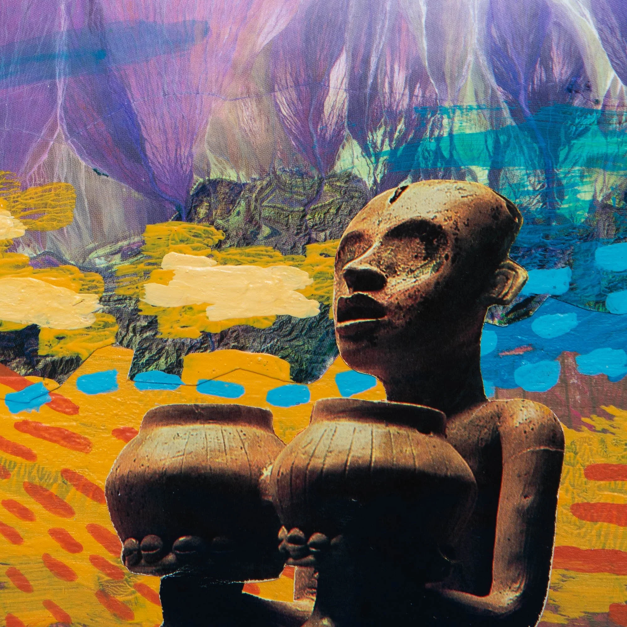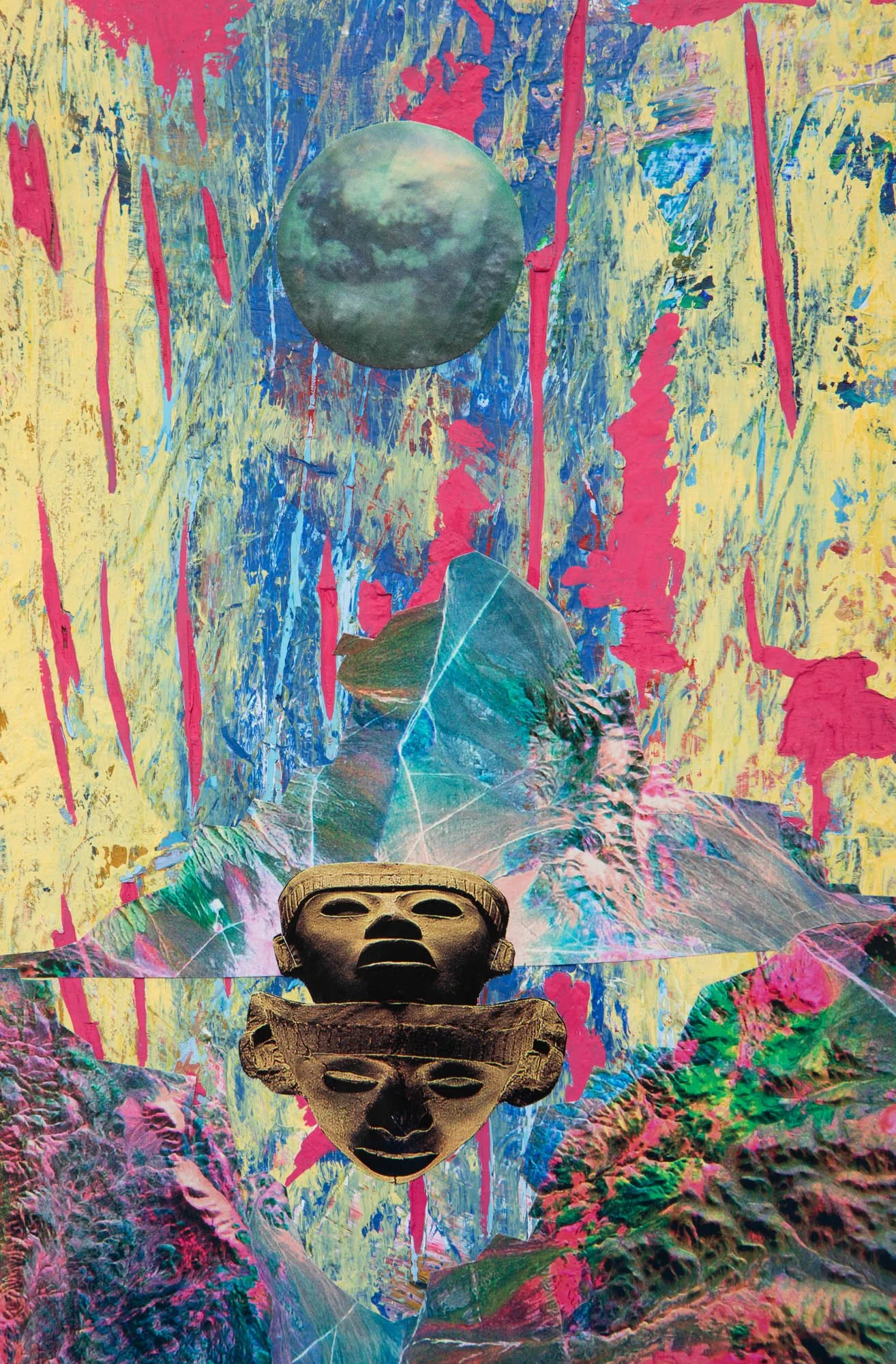 “Interplanetary Ceremony” Collage & Mixed Media on Board, 2020.