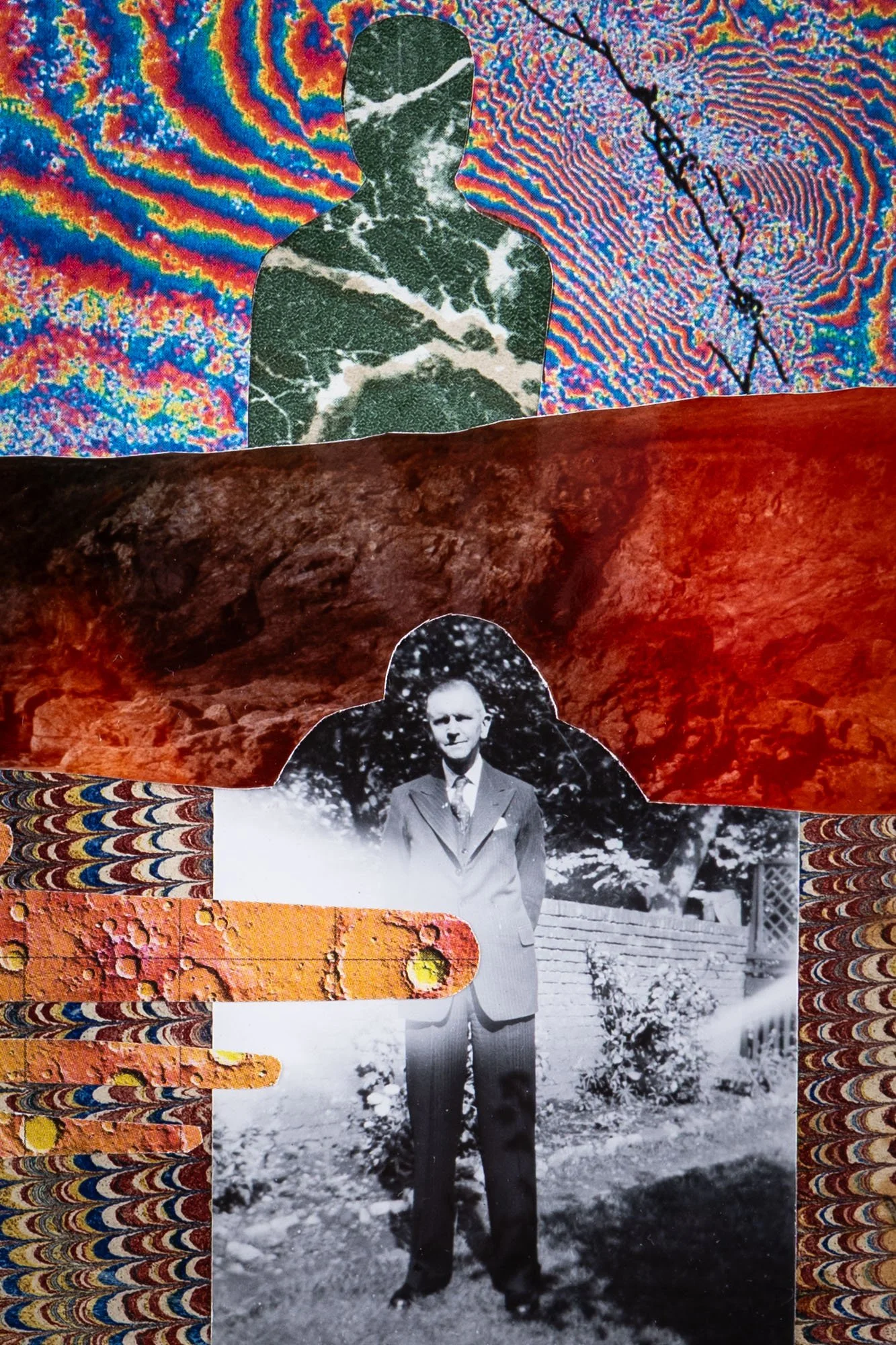 “Arthur in the Gravity Wave” Collage on Paper, 2025.