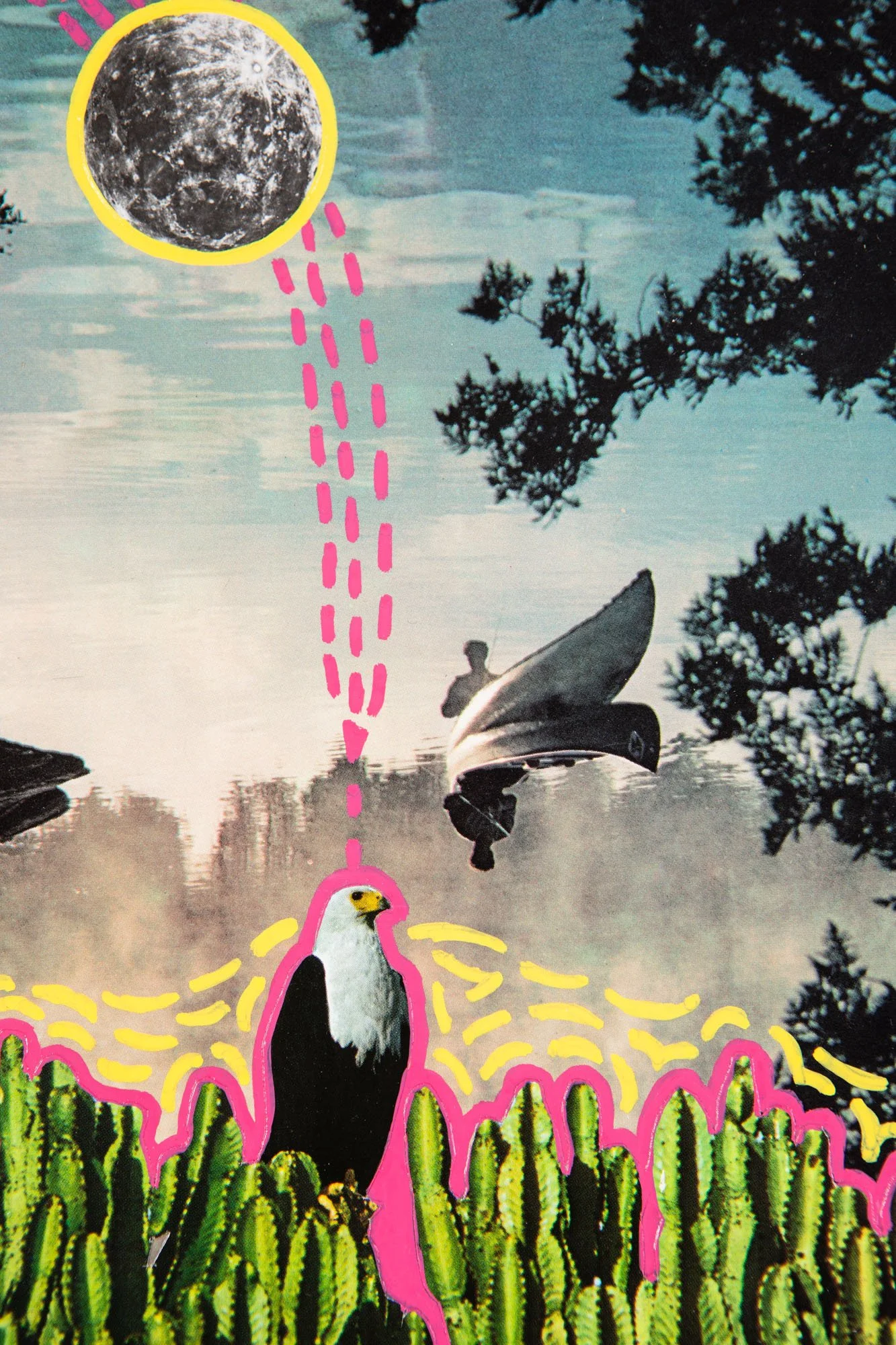 “Eagle Dream” Collage & Acrylic on Paper, 2021.